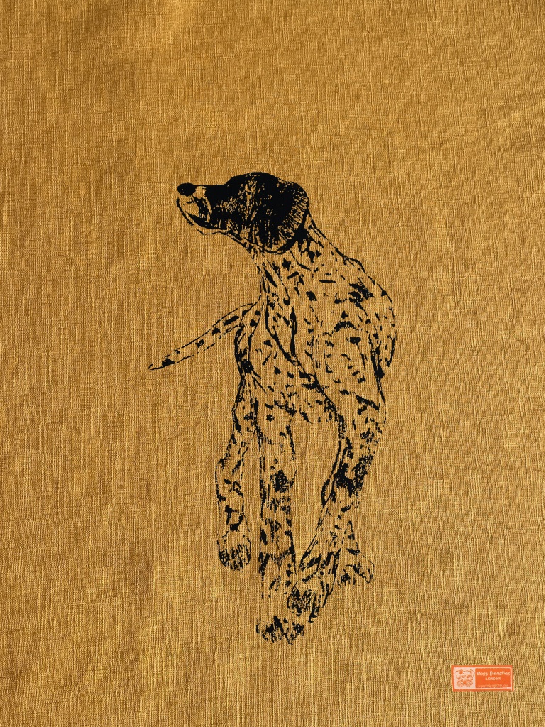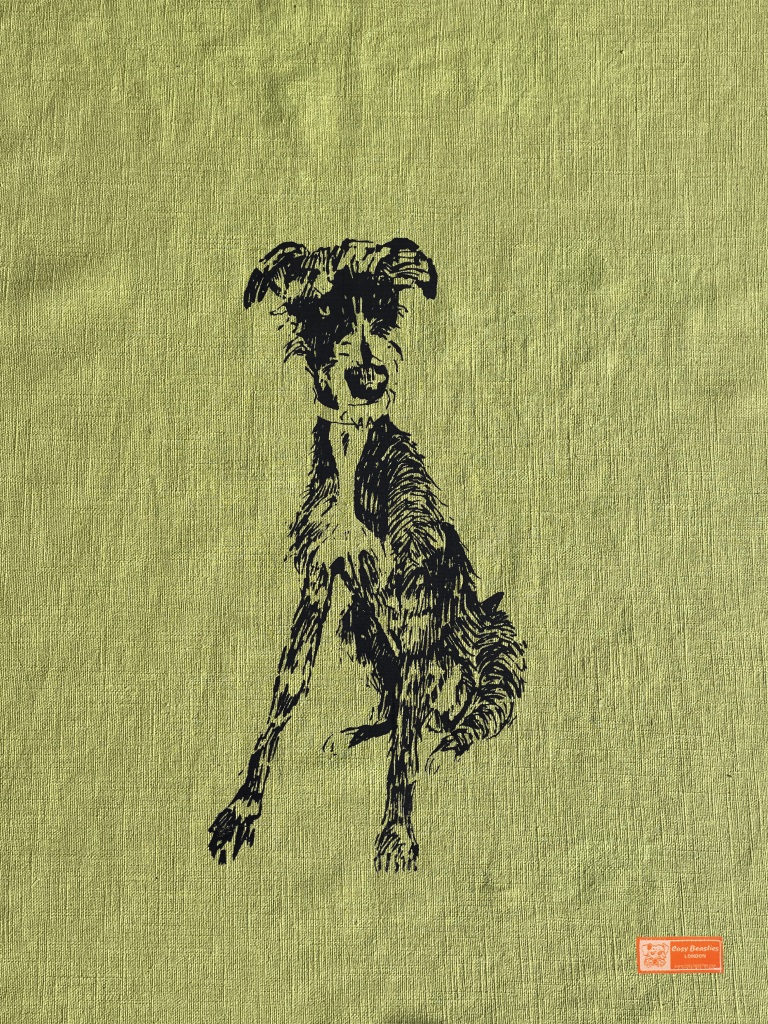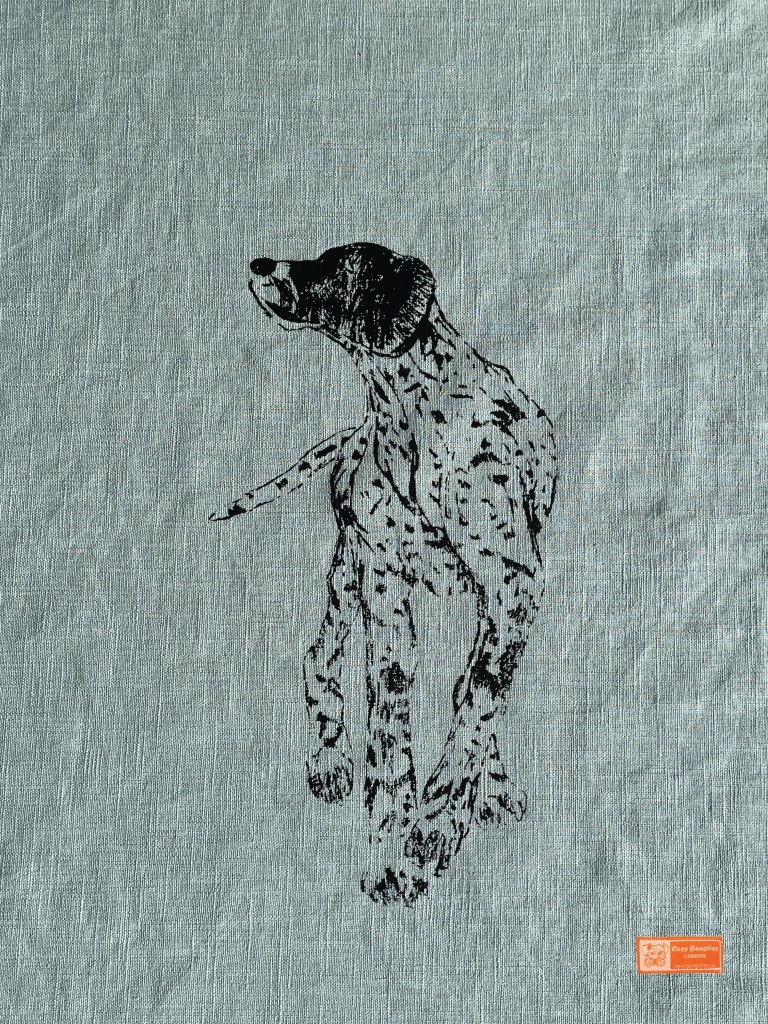 A coloured Linen Tea towel featuring a dog from our collection of dog drawings. From Airedales to Schauzers we have a number to choose from and the list will continue to grow.