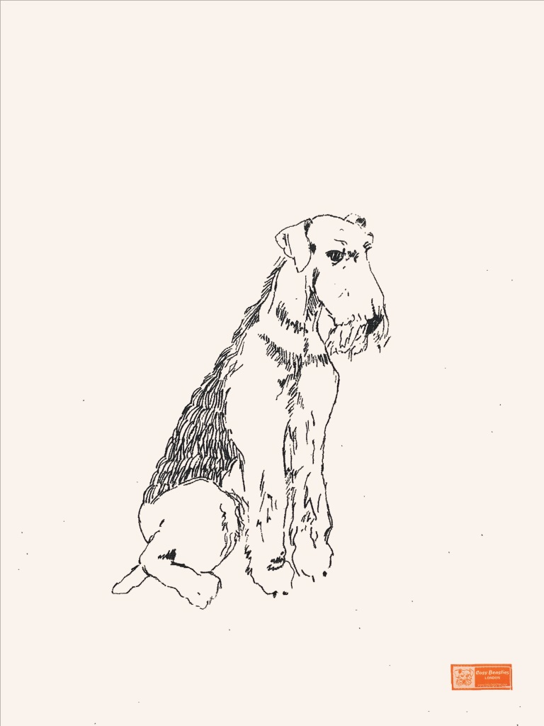 100% cotton Tea towel featuring a dog from our collection of dog drawings. From Airedales to Schauzers we have a number to choose from and the list will continue to grow.